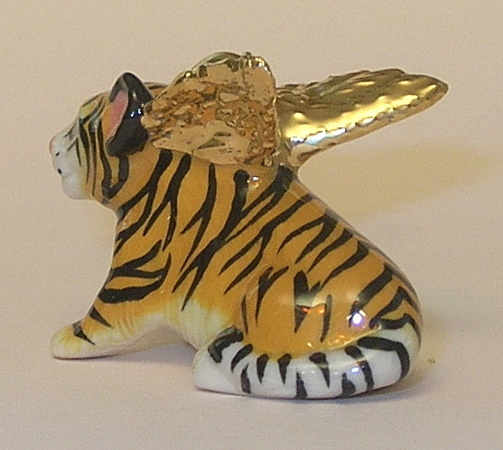 Our tiger angel ornament is ready to adorn your Christmas tree or hang in a window sill to capture the sunlight. He is