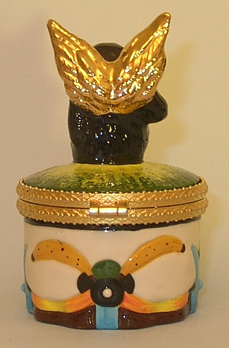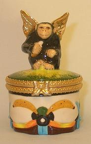 Monkey Angel Hinged Porcelain Box 2 1/2 x 3 1/2