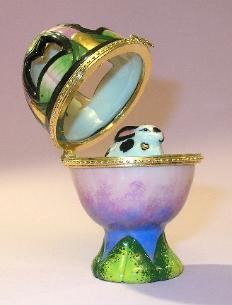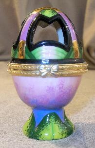 This delightful Hinged Porcelain egg is hand painted in the studio of Michael Lawrence