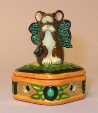 Each porcelain mouse box, Christmas ornament and figurine are handmade and hand painted in