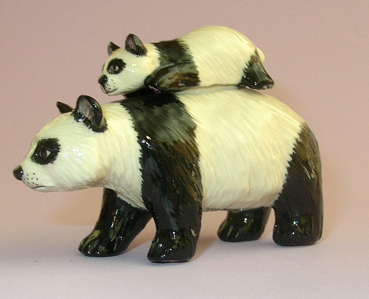 Panda mother and baby figurine porcelain box by artist Michael Lawrence