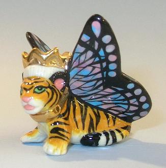 In the court of the fairy queen,Sebastian the tiger prince smooths things over with the courters. His brilliant blue and pink wings